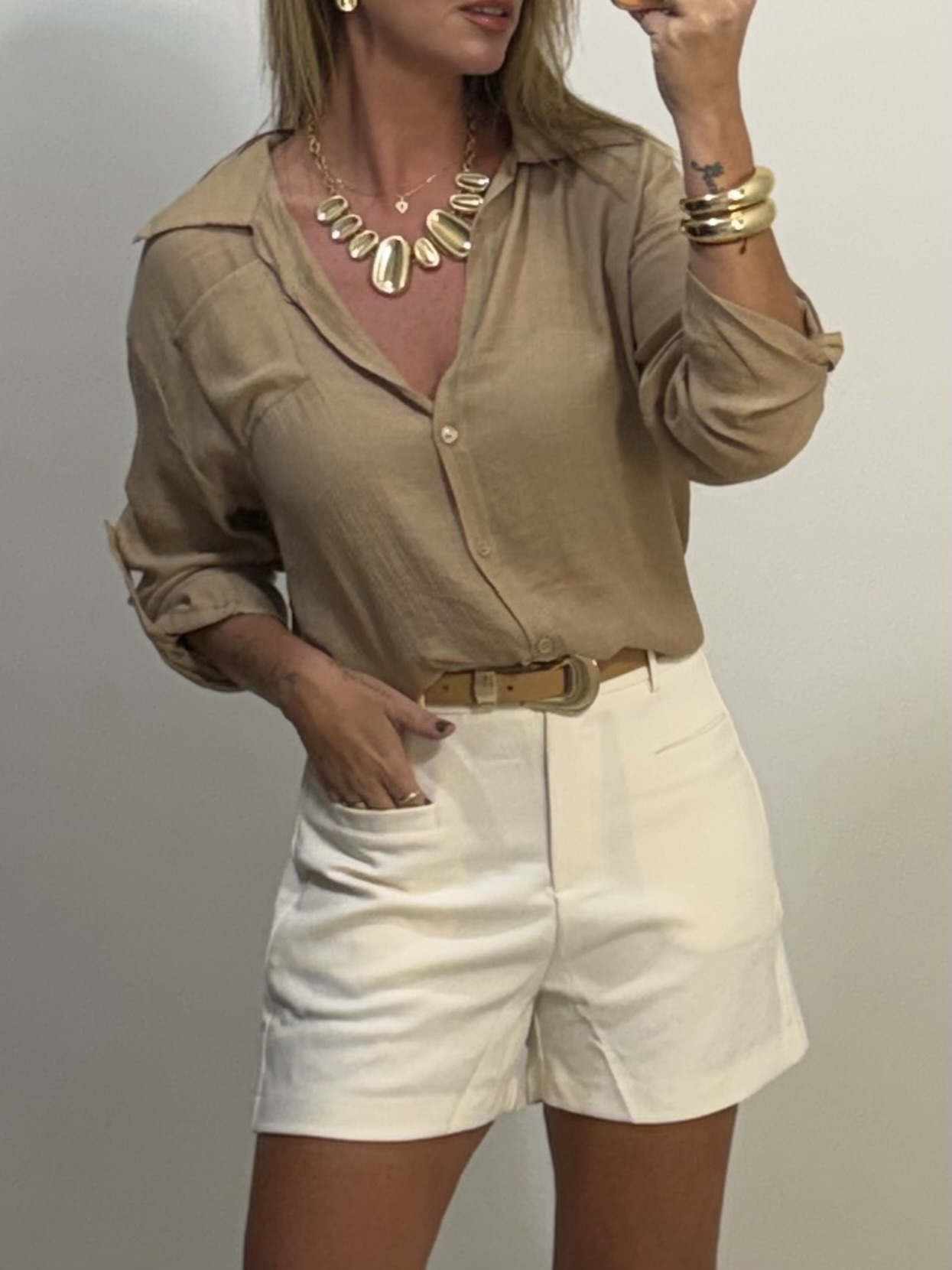 Leve e confortável, pode ser usada de diversas formas como camisa tradicional, como terceira peça, aberta sobre looks básicos, como saída de praia, garantindo elegância e leveza