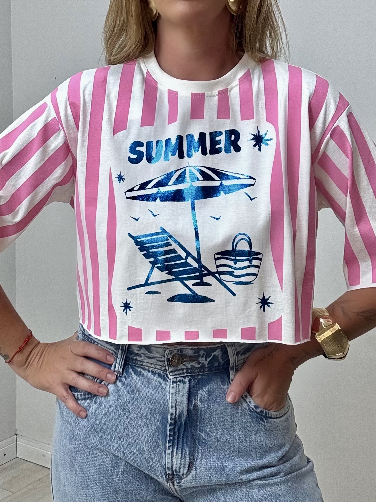 Conforto e estilo no seu dia a dia!Nosso cropped em algodão é a peça-chave que faltava no seu guarda-roupa. Com manga curta, gola redonda e modelagem moderna, ele combina com tudo: jeans, saias, shorts e muito mais.