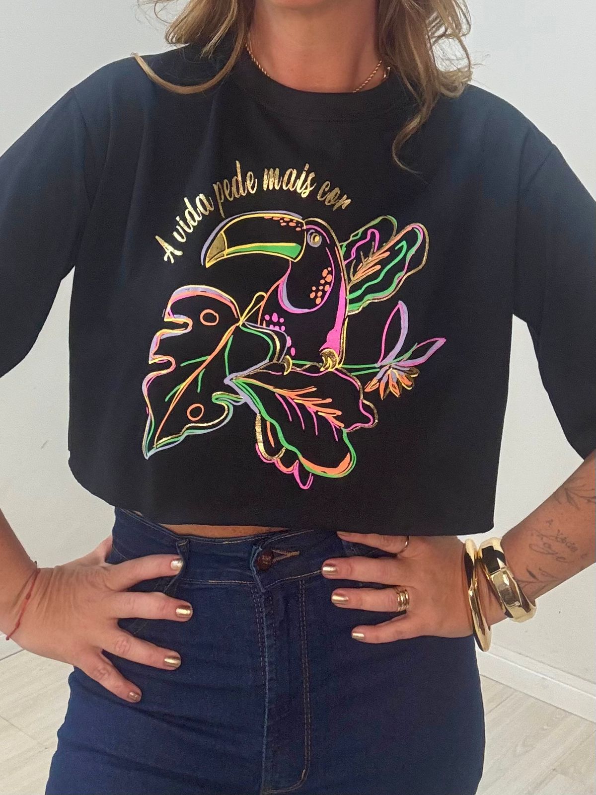 Conforto e estilo no seu dia a dia!Nosso cropped em algodão é a peça-chave que faltava no seu guarda-roupa. Com manga curta, gola redonda e modelagem moderna, ele combina com tudo: jeans, saias, shorts e muito mais.