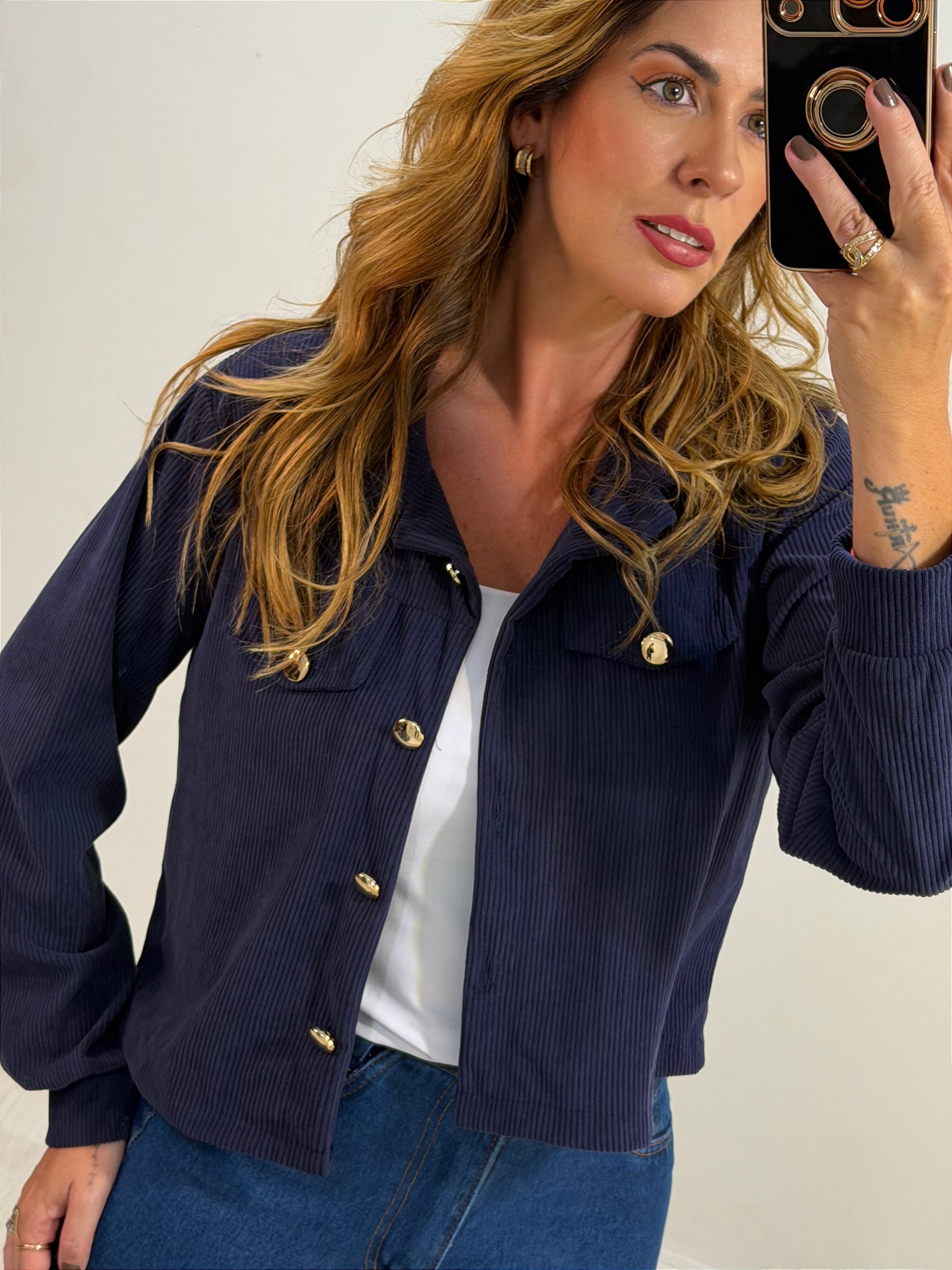 Com um toque retrô e cheio de sofisticação, esta jaqueta em veludo cotelê é perfeita para compor looks estilosos e modernos. Confeccionada com um tecido encorpado e macio, ela apresenta fechamento frontal por botões, bolsos falsos decorativos que dão charme à peça e punhos com fechamento em botão, que garantem um acabamento refinado. Versátil e atemporal, é ideal para compor produções casuais ou mais elegantes com facilidade.