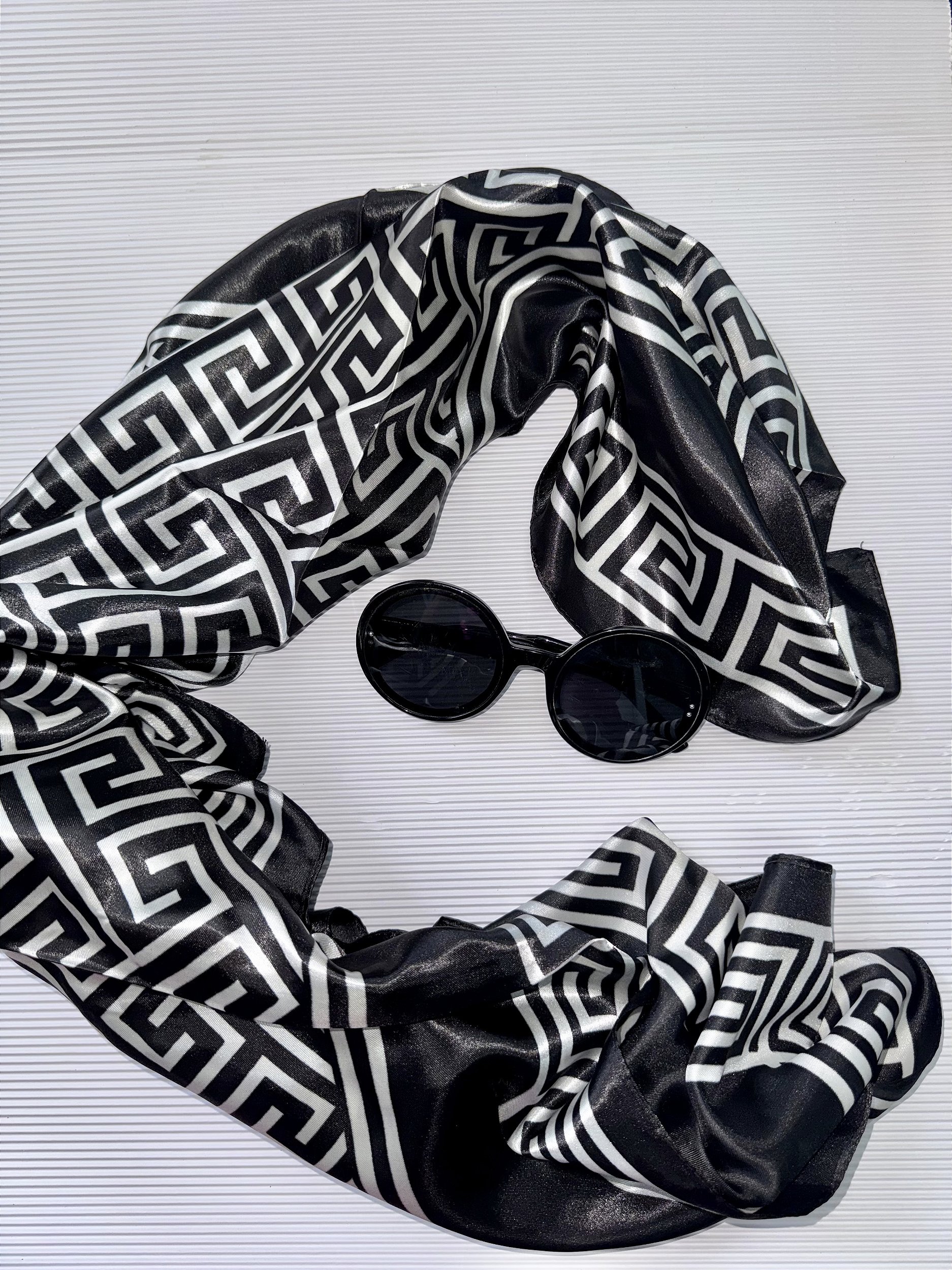 LENÇO CETIM GEOMÉTRICO PRETO (AR25-1908)