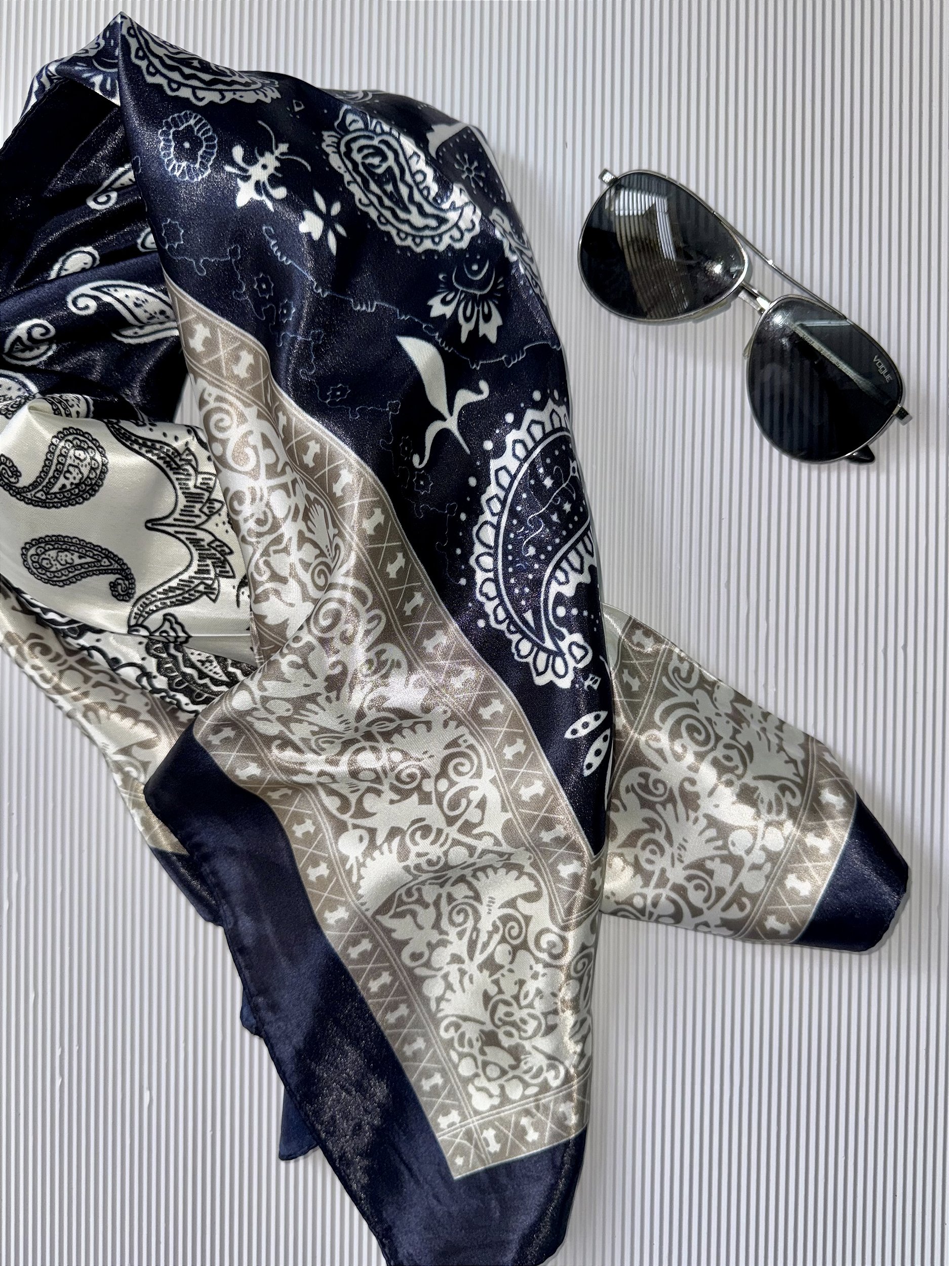 O lenço é um acessório elegante e cheio de estilo. Traz um toque suave e feminino ao seu look. Feito em tecido acetinado e leve, oferece um toque macio e confortável na pele.
