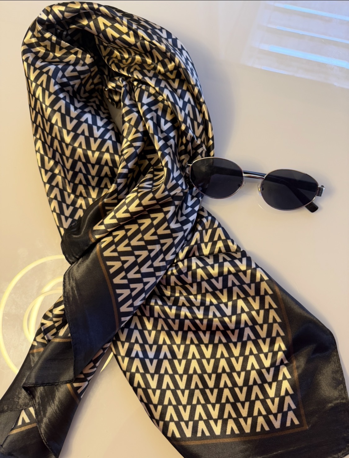 O lenço é um acessório elegante e cheio de estilo. Traz um toque suave e feminino ao seu look. Feito em tecido acetinado e leve, oferece um toque macio e confortável na pele.