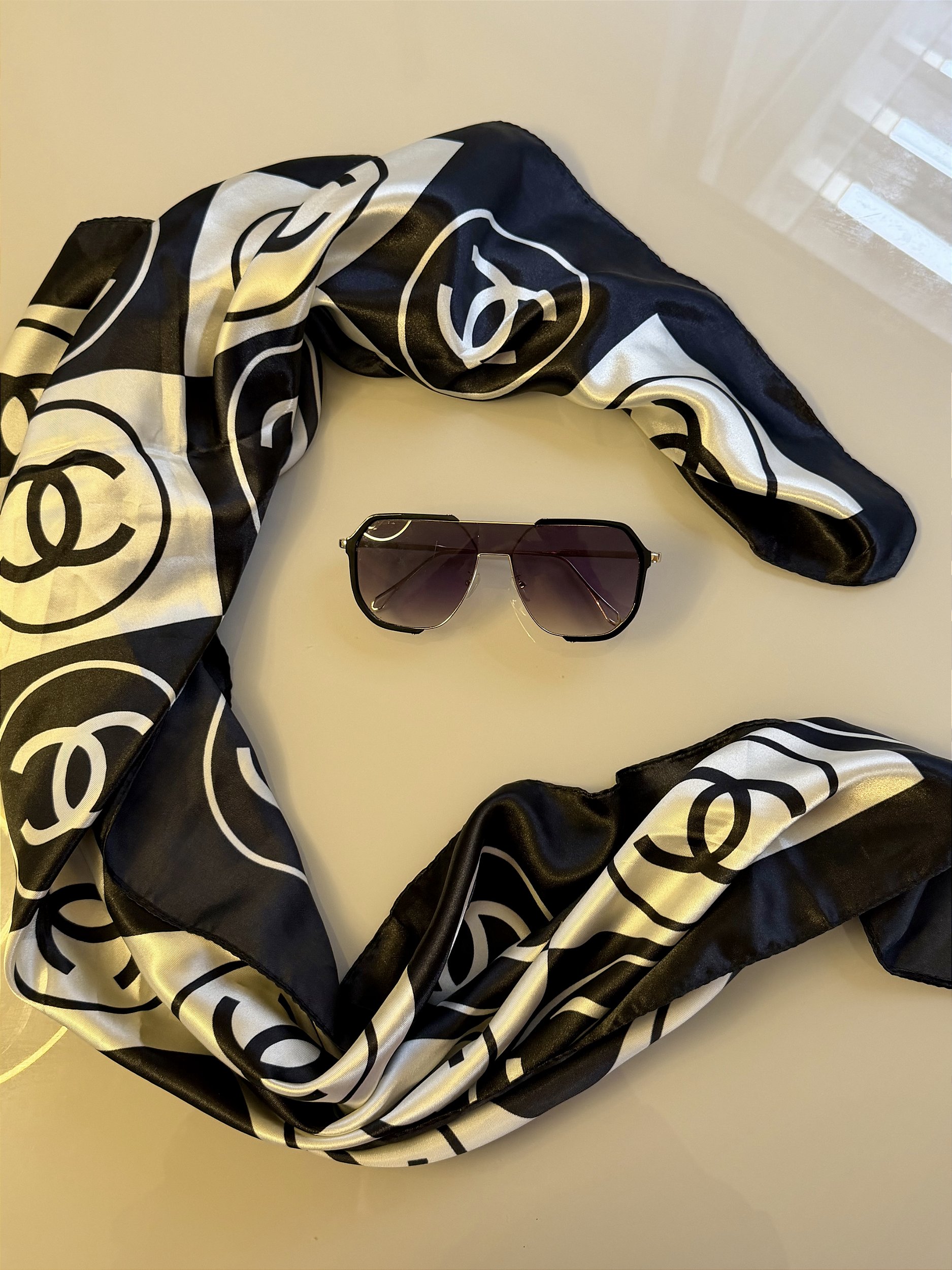 O lenço é um acessório elegante e cheio de estilo. Traz um toque suave e feminino ao seu look. Feito em tecido acetinado e leve, oferece um toque macio e confortável na pele.