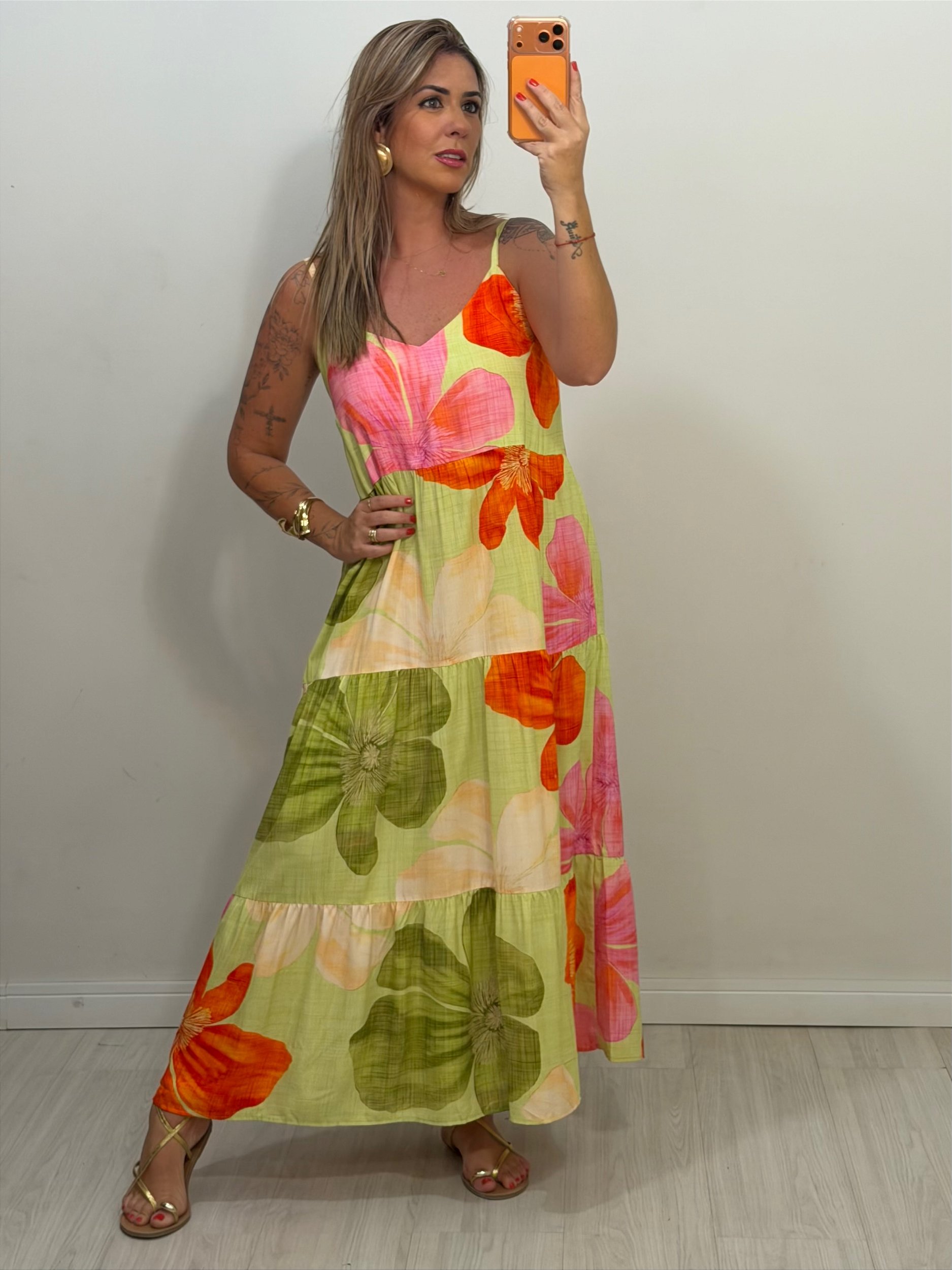 Encante-se com a leveza e o movimento do nosso vestido Ísis. Com alças reguláveis que garantem o ajuste perfeito, ele conta com um charmoso decote em V que valoriza o colo e elástico na parte de trás para maior conforto. Suas camadas criam um visual fluido e delicado, ideal para dias de sol ou eventos especiais. Um modelo versátil que combina frescor e elegância, perfeito para qualquer ocasião!