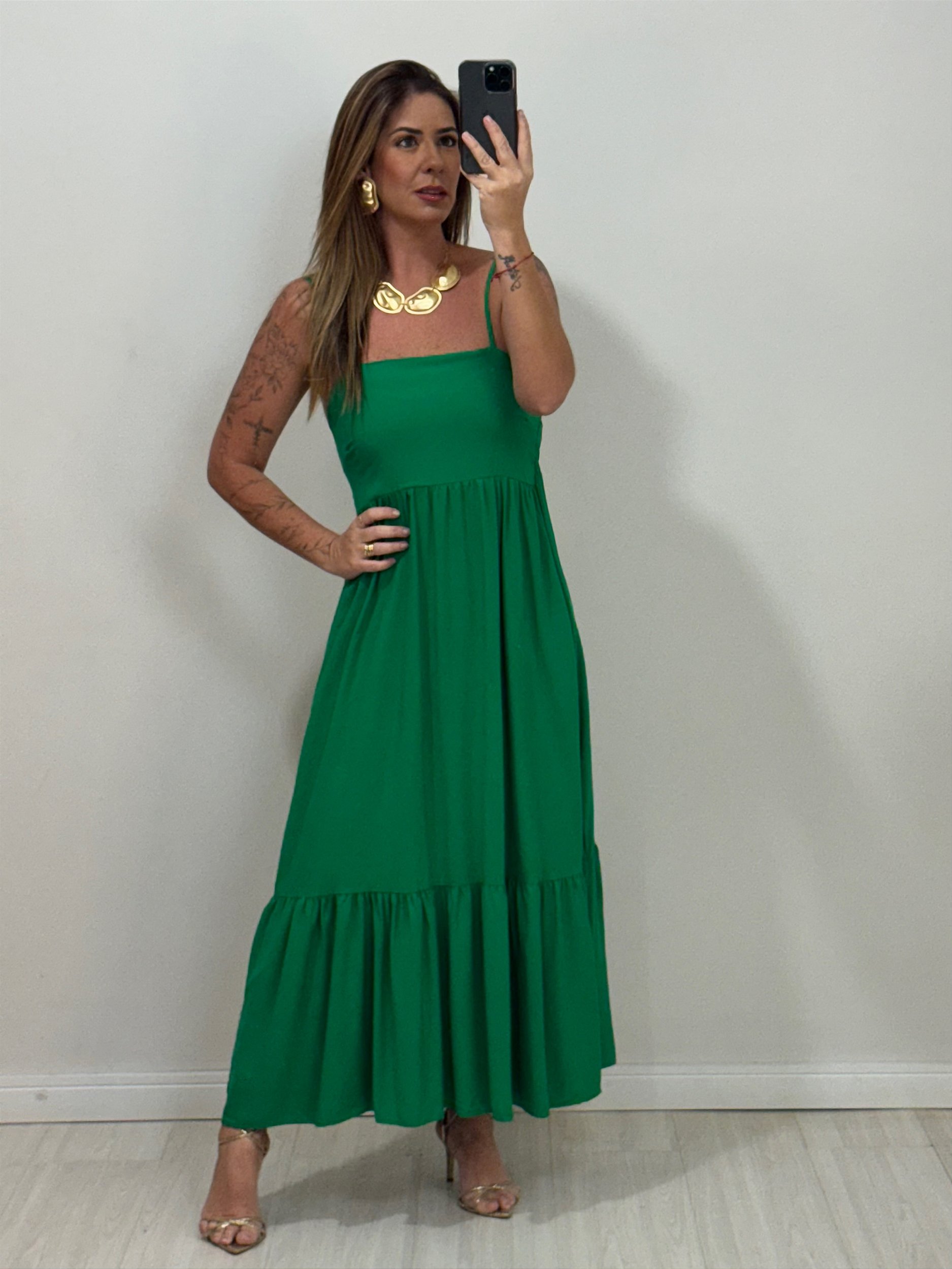 Encante-se com a leveza e o movimento do nosso vestido Jade. Com alças reguláveis que garantem o ajuste perfeito, ele conta com um charmoso decote reto que valoriza o colo e lastex na parte de trás para maior conforto. Sua camada na barra cria um visual fluido e delicado, ideal para dias de sol ou eventos especiais. Um modelo versátil que combina frescor e elegância, perfeito para qualquer ocasião!