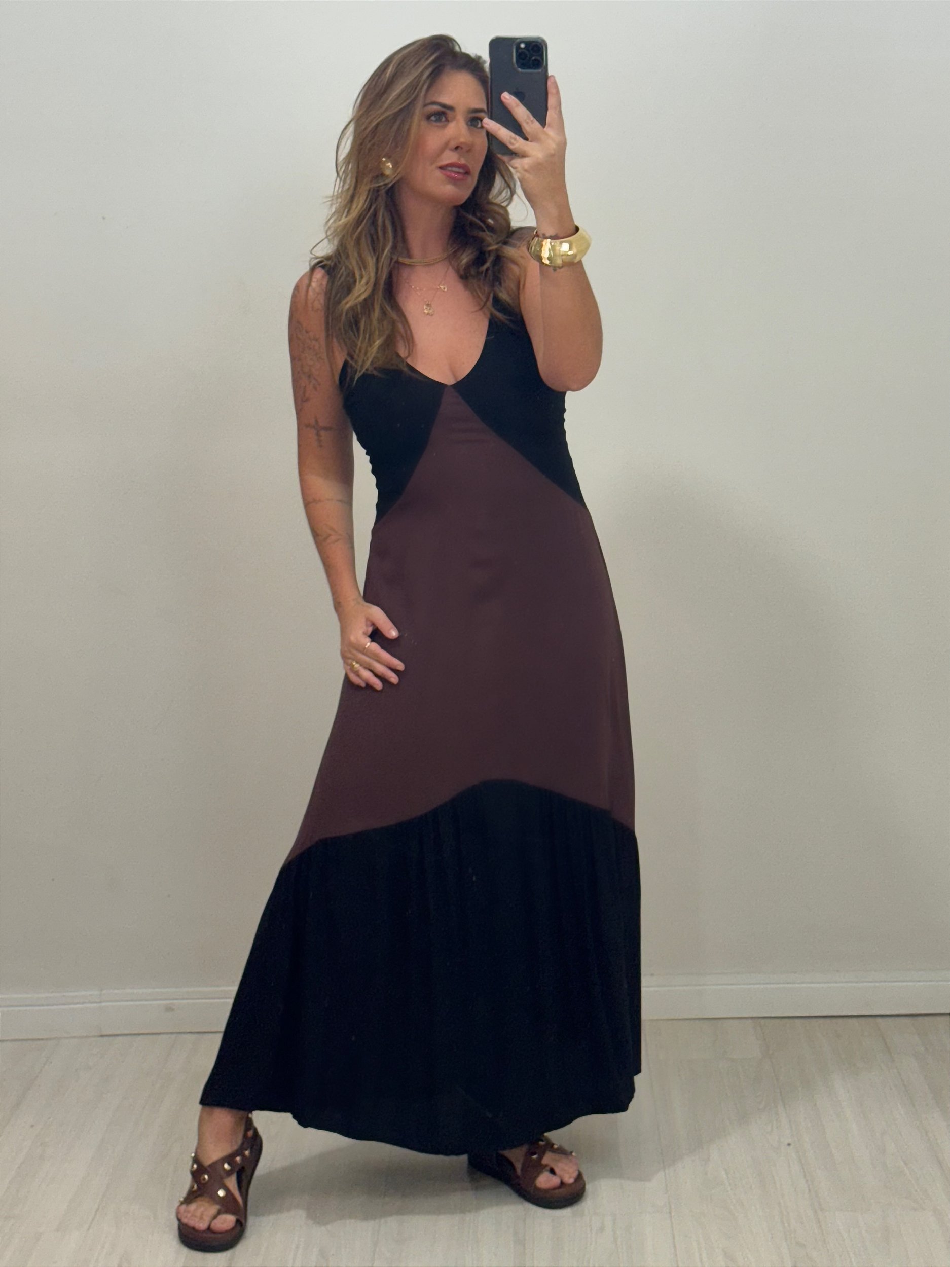 Encante-se com o charme do Vestido Tainara, um modelo longo bicolor confeccionado em viscolinho leve e confortável, perfeito para realçar a elegância em qualquer ocasião. Seu design moderno apresenta alças reguláveis, permitindo ajuste ideal ao corpo, e um delicado recorte no busto que valoriza a silhueta com sofisticação.